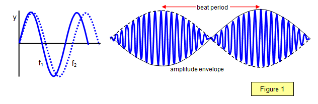 Consider two waves of slightly different frequencies f1 and f2 (f1 > f2) but of