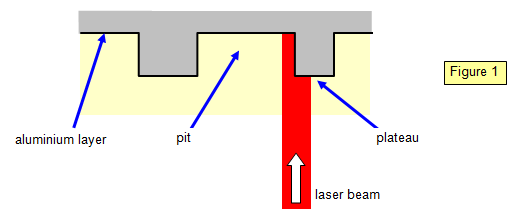 of the laser beam falls on a plateau and part on a pit. The pit is one quarter of a wavelength