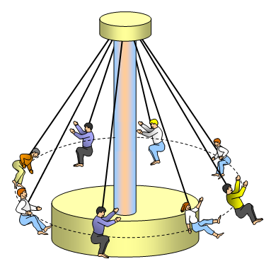 swing out as the centre rotates faster and faster. But do the empty chairs have a bigger orbit