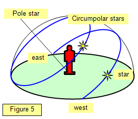 Some stars are far from the celestial pole and as the Earth rotates we see them rising in the east and setting in the west each night. However some stars are so close to the pole that they never set but can be seen every night of the year circling the pole star. These are known as circumpolar stars.