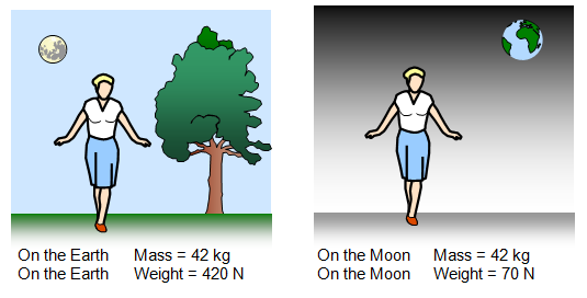 mass of 42 kg but her weight would be 70 N.