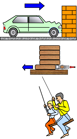 effects of inertia by knocking away the bottom block from a pile of wooden blocks using a sharp