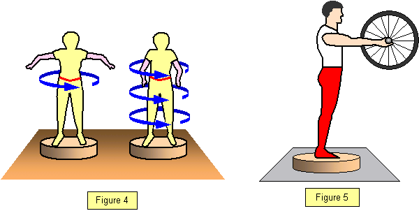 5. Now stand on the rotating table and get someone to give you the spinning flywheel with