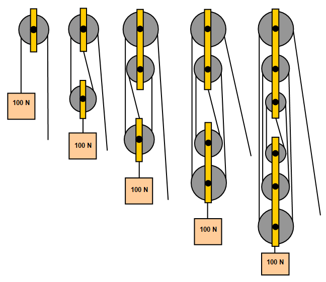 | Pulleys | Load (N) | Effort (N) | Pulleys | Load (N) | Effort (N) | |