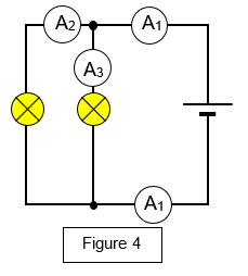 In the electrical circuit shown in Figure 4 the bulbs are connected in PARALLEL and the current splits at the junction.