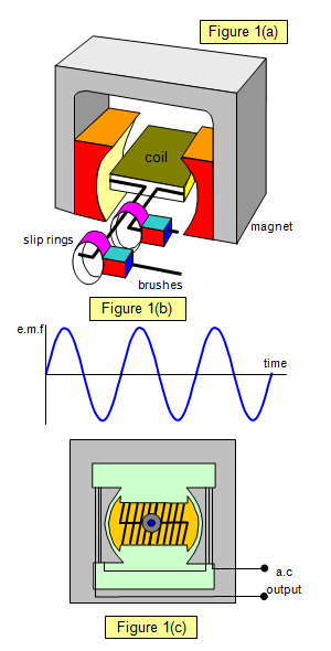 A simplified form of the a.c. generator is shown in Figure 1(a).