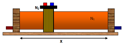 solenoid of N1 turns, with a cross-sectional area A, length x and carrying a current I.