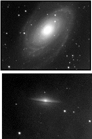 the top photograph (M81) is eleven million light years away while that in the bottom part of