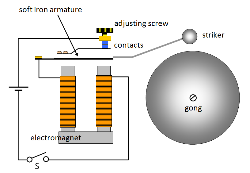 the current starts flowing again. This is repeated over and over again and so the bell