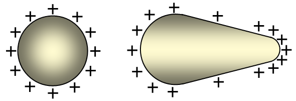 are evenly spread but with a pointed shape the charges are always concentrated around the