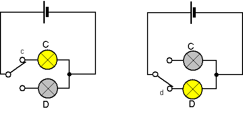 When the switch is moved to position d bulb D