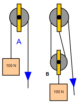 pulleys things are a little different. In pulley system B if the effort on the right hand rope is