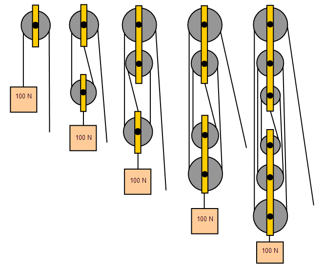 more pulleys in a pulley system the less effort you have to use to lift up a certain