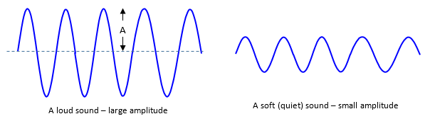The amplitude (A) is a precise scientific definition that we use to describe the size of the vibrations. It is a measure of how much the air is disturbed by the sound wave. This is shown on the diagrams below.