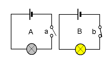This can either be open (a) or closed (b). If the switch is open the current can't flow and the bulb is off (A).