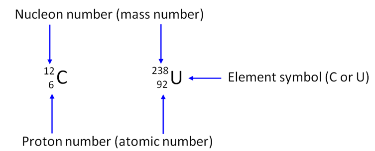 writing the structure of a nucleus so that is easy to see what the proton and nucleon numbers