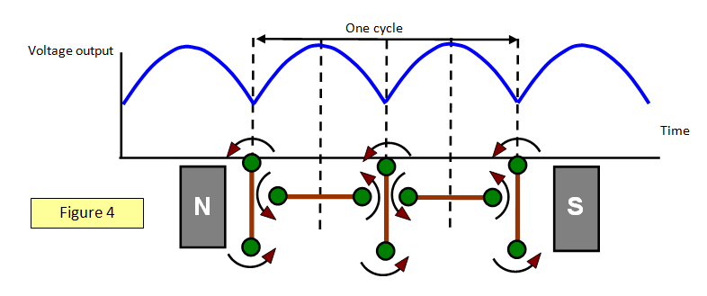Figure 2. As one side of the coil cuts down through the field, the output from that side will