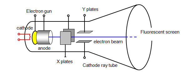 in the diagram below. The bigger the voltage the further the spot gets pulled across, and