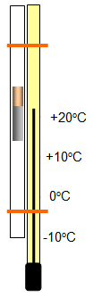 Fix the glass capillary tube to the thermometer with the rubber bands with the open end at the top. The bottom of the tube should be level with the -10 oC mark on the thermometer.