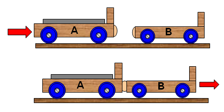A completely elastic collision means that the two objects would simply bounce off each other when they collide (two power balls). A completely inelastic collision means that the two objects would stick together and move off as one object after the collision (two lumps of soft plasticene). If two lumps of soft plasticene of the same mass and traveling at the same speed but in opposite directions collided with each other they would stop dead – all their kinetic energy would be lost. In real life most collisions are somewhere between these two extremes. In the diagram at the top of the page a large lorry is about to collide with a small milk float. During the collision the force of the lorry on the milk float is the same as the force of the milk float on the lorry. However the effect of this force on the milk float is much greater than it is on the lorry.