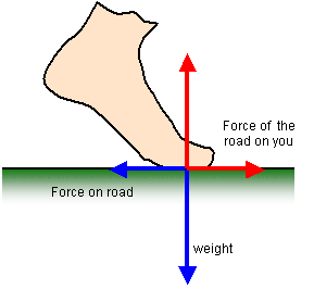force on you and it is this force that enables you to move forwards (horizontal red