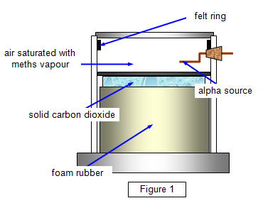 than it is higher up in the chamber. Now when vapour cools it condenses and so a fine cloud