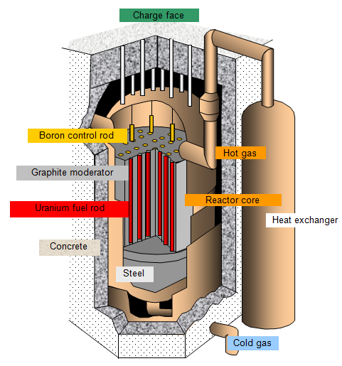 under pressure to take away the heat energy produced by the fission reactor. This gas is