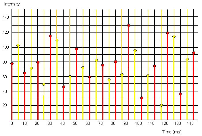 | Time (ms) | Signal intensity (decimal) |