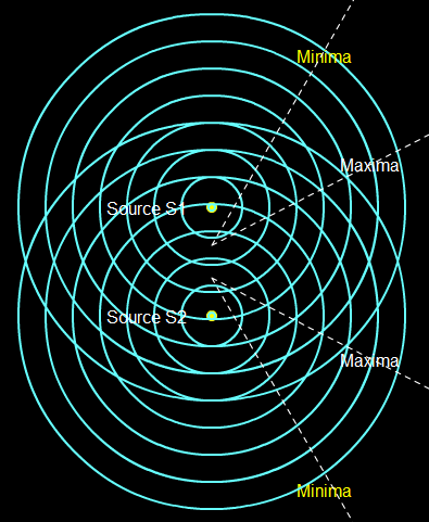 The following diagram shows the interference pattern produced by the overlapping sound waves.