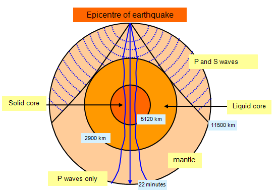 These are primary waves. They push and are longitudinal waves. They move rapidly and can pass through both solids and liquids. You can compare this with pushing the end of a line of dominoes – they all fall down.