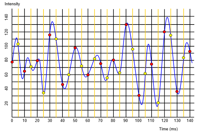 often you sample the original wave the better the ditital output will be.