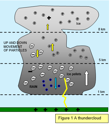 In dry air at atmospheric pressure a voltage of 30 kV is required to produce a spark between two spherical electrodes 1 cm apart. (For pointed electrodes the p.d. is reduced to 12 kV due to the higher field at a point.) In a thunderstorm, even allowing for the moisture in the air, you can appreciate the truly enormous voltages that are required for one lightning flash. For small potential differences, a gas is an almost perfect insulator.