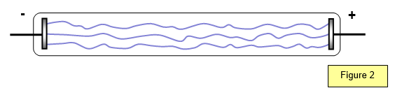 At 0.01 mm pressure or less, Crookes' dark space fills the whole tube and the glass fluoresces due to electron impact (Figure 5). In 1858 Plucher demonstrated that the fluorescence could be moved about by a magnet, showing that it was due to charged particle motion.