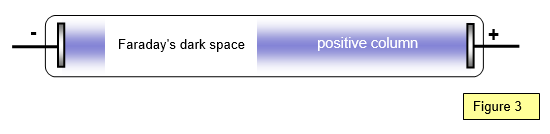 At 5 mm pressure, a pink positive column and a negative glow appear near the cathode. These two regions are separated by Faraday's dark space (Figure 3).