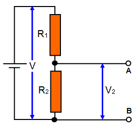(V = IR1 + IR2 and V2 = IR2 and so V2/V = R2/[R1+R2])