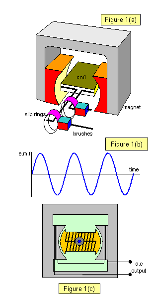 A simplified form of the a.c. generator is shown in Figure 1(a).