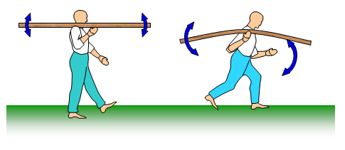 carrying a long plank on his shoulder. At each step the plank flexes a little (a) and the ends move up and down. He