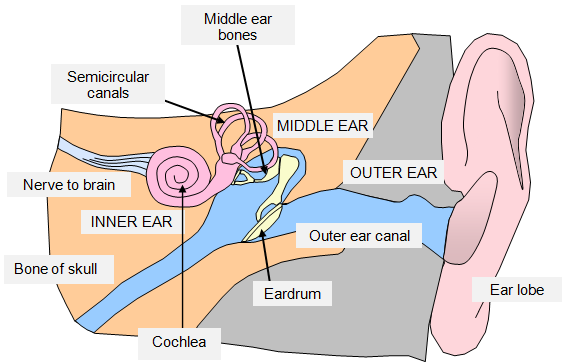 then carried by the nerve to the brain – you can hear the sound.