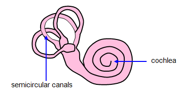 a hollow organ filled with liquid and with the inside covered in fine hairs. The hairs are