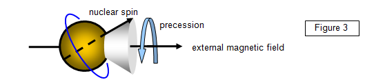 around the direction of the field, while spinning. This motion is called precession, and it is