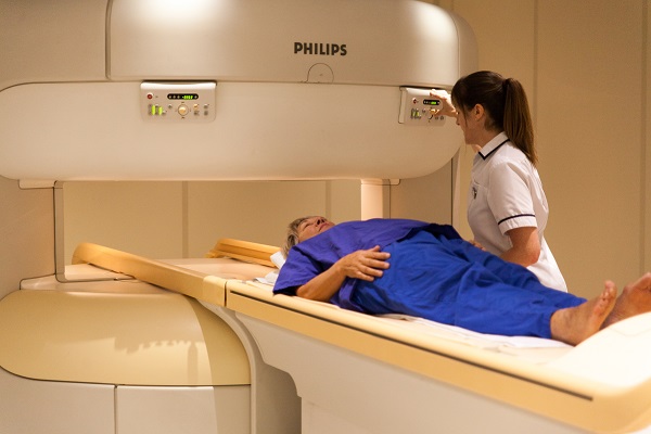 with a strong magnetic field and radio waves to generated pulses that can be analysed in the