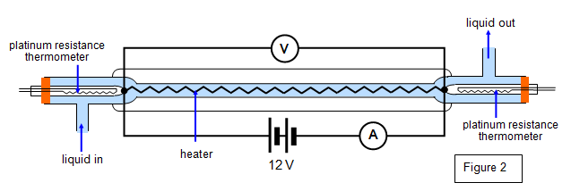 There are several simple methods for measuring the specific heat capacities of both solids and liquids, such as the method of mixtures, but we will consider here only electrical methods. (You will find a consideration of the method of mixtures in the example in Heat energy 1). Since the specific heat capacity varies with temperature, we have seen it is important to record the mean temperature at which the measurement is made.