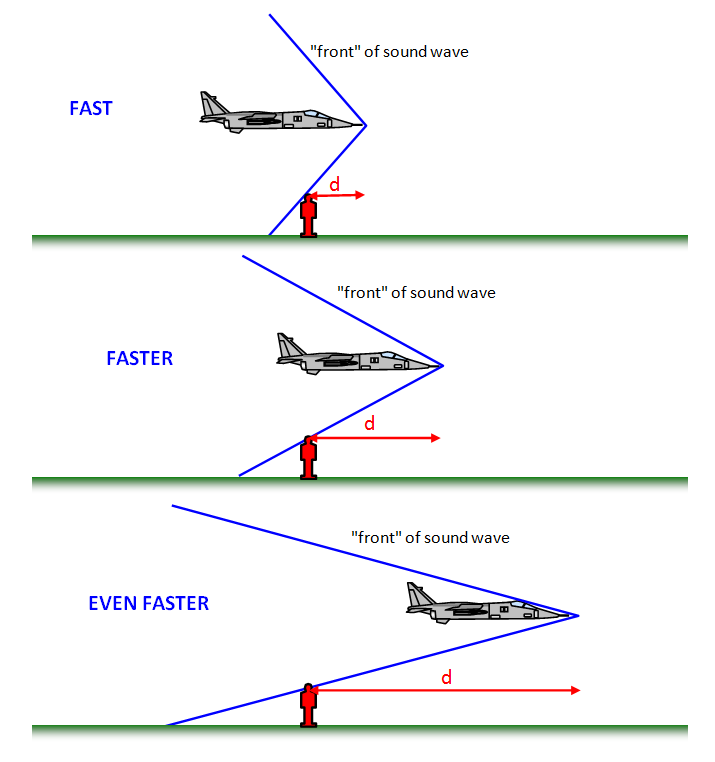 past them (I have called this distance d. This distance gets bigger as the plane flies faster.