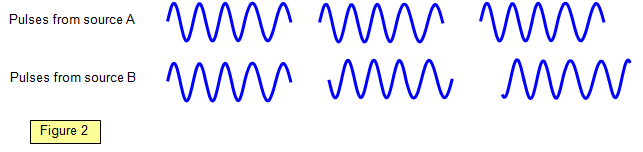 However two separate light sources cannot be used as sources for a static interference pattern because although they may be monochromatic the light from them is emitted in a random series of pulses of around 10-8 s duration. The phase difference that may exist between one pair of pulses emitted from the source may well be quite different from that between the next pair of pulses (Figure 2).